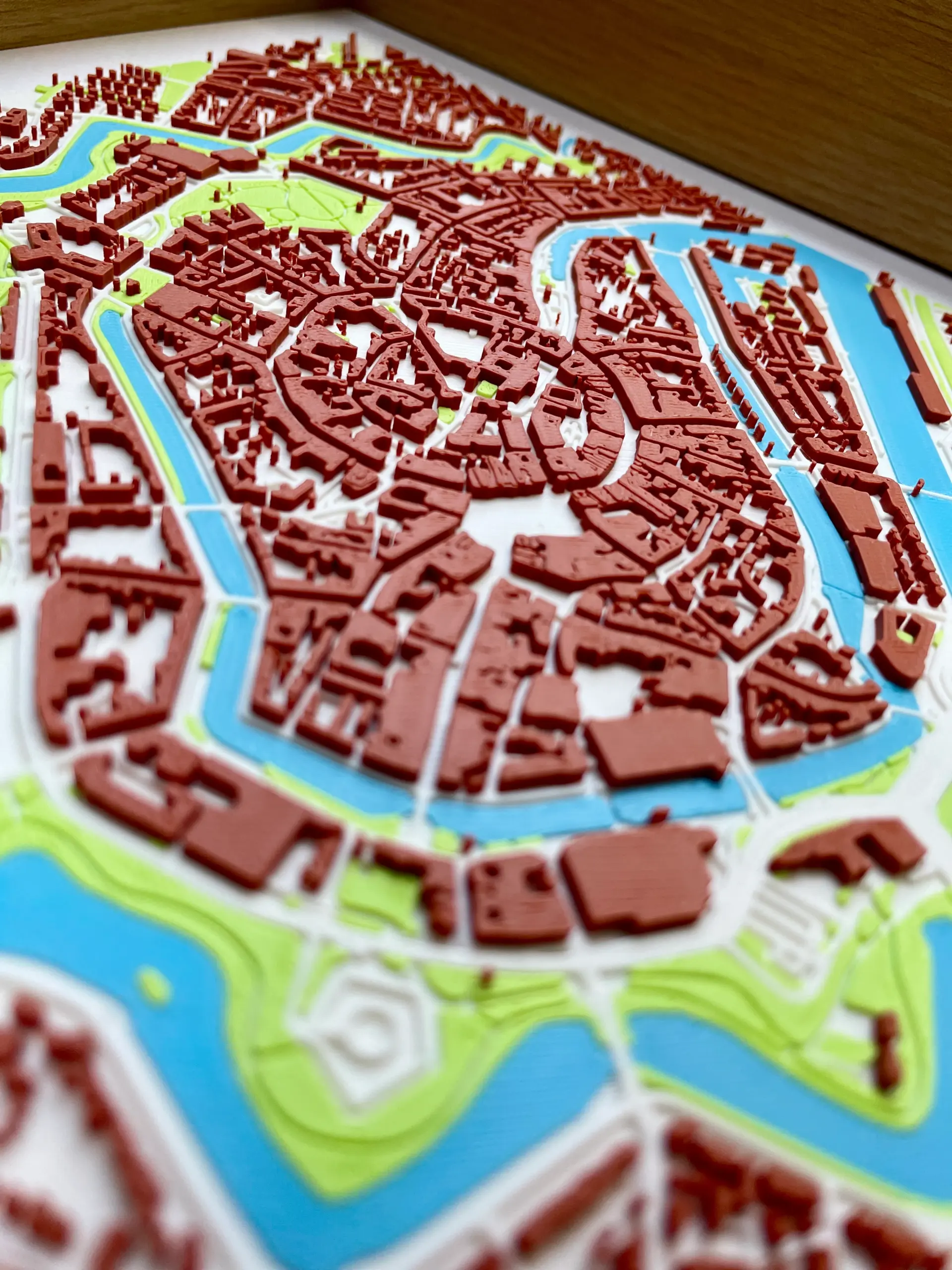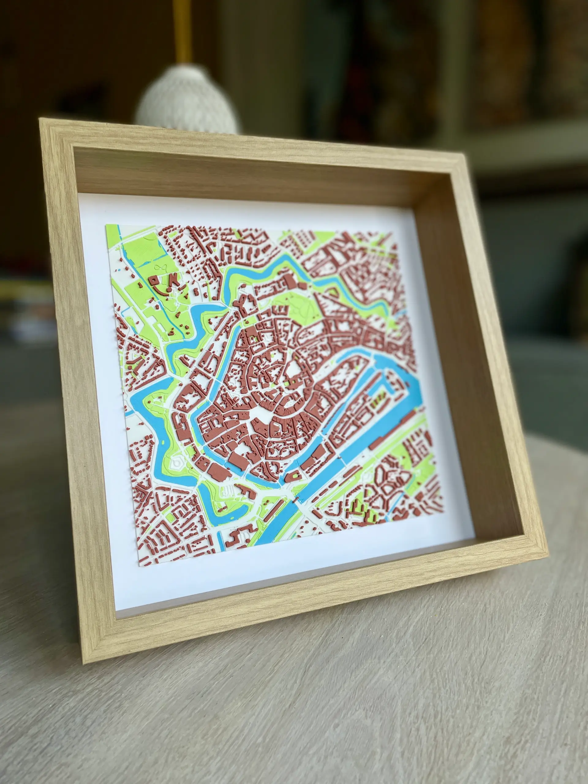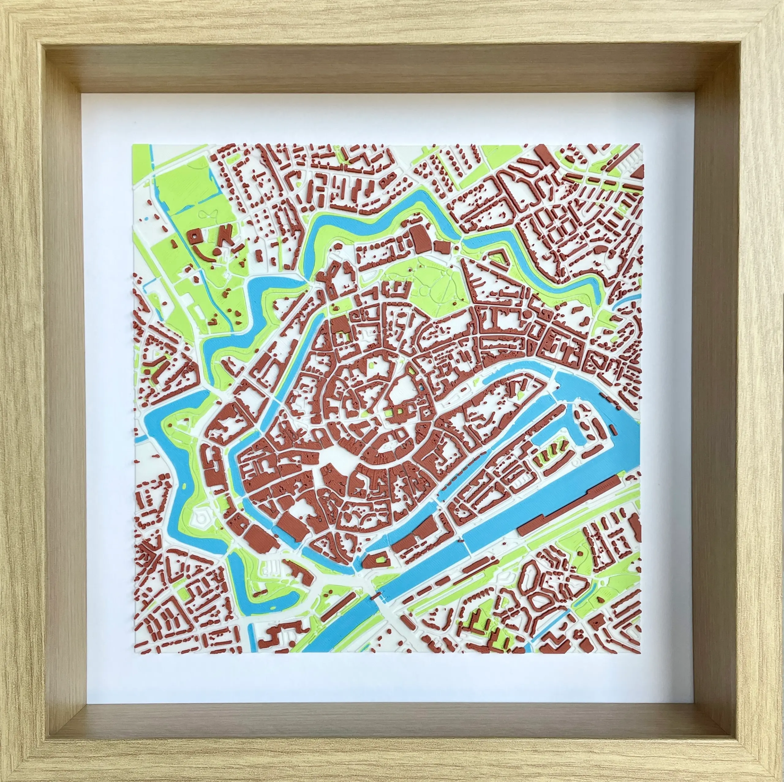 - Afmetingen stadsmodel: 20 × 20 cm (lijst 27 x 27 cm)